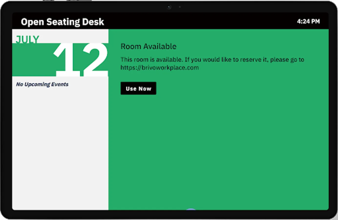 This app is part of the Brivo Workplace Management Platform and requires a manager or owner account to use. When you log into Brivo Room with your management account, all features become available.