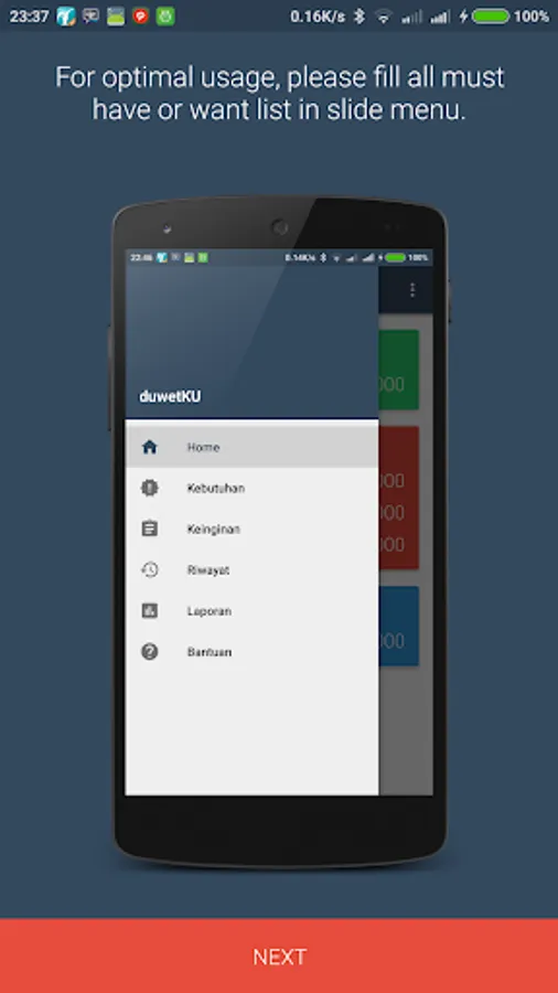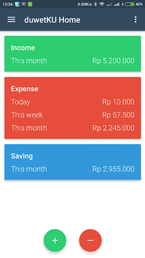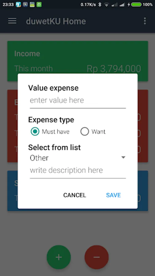duwetKU is money balancer application, this application will record and manage all money transaction. this application using unique method to make user more economic when using money. this method publised by elizabeth warrent 50/30/20 method. 50% for must have activity, 30% for fun and 20% for saving.