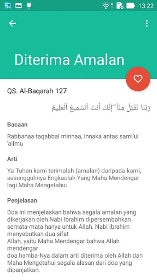 It is a collection of applications prayer of Qur'an, hadith, and other daily prayers. all the prayers in this application can be accessed offline (no Internet connection). In each set of prayer in this application there is a translation of prayer, how to read, and source. You can also choose a favorite prayer with the "love".