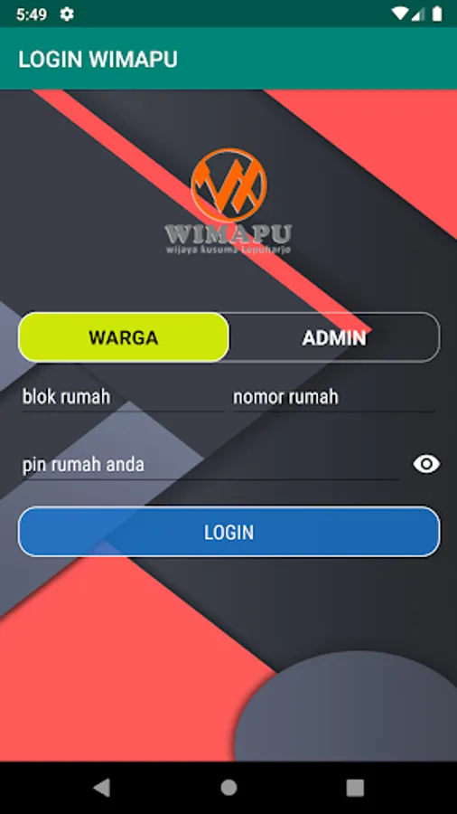 This application is used to manage housing finance, with this application the calculation of fees and transactions for housing needs will be calculated automatically, the bill can be calculated automatically. For housing residents if you want to see financial data and housing residents register, please log in with your username: block and house number. Example A-22 must be uppercase and have a "-" sign. for password / pin, please ask the RT.