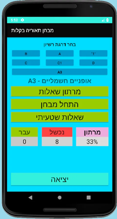 Was built for the examinees in the theoretical test for the various driving license levels in Israel.