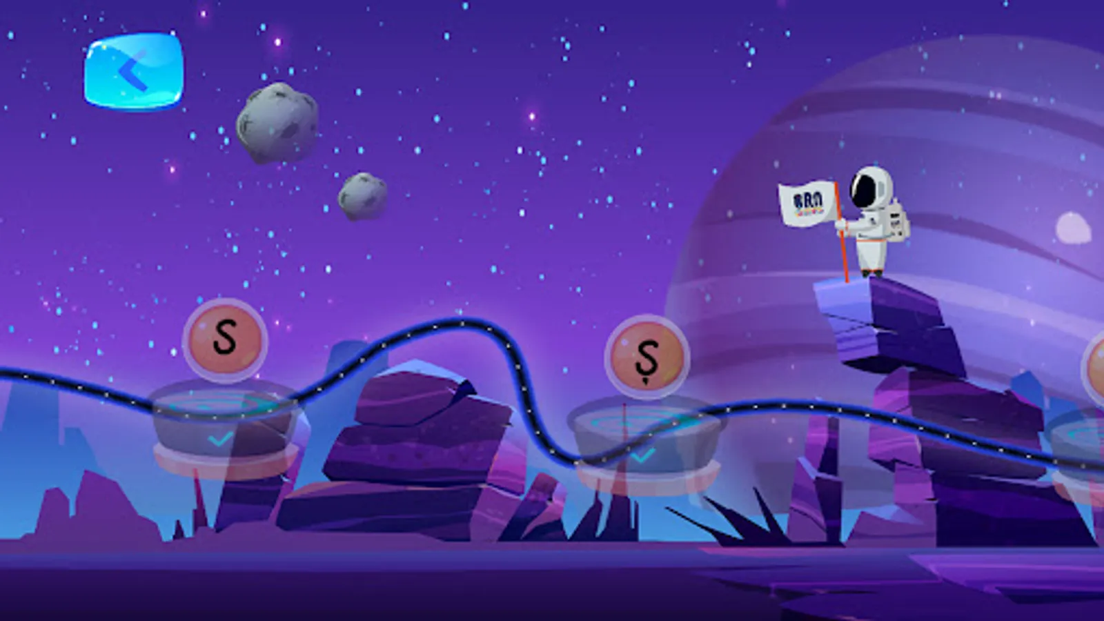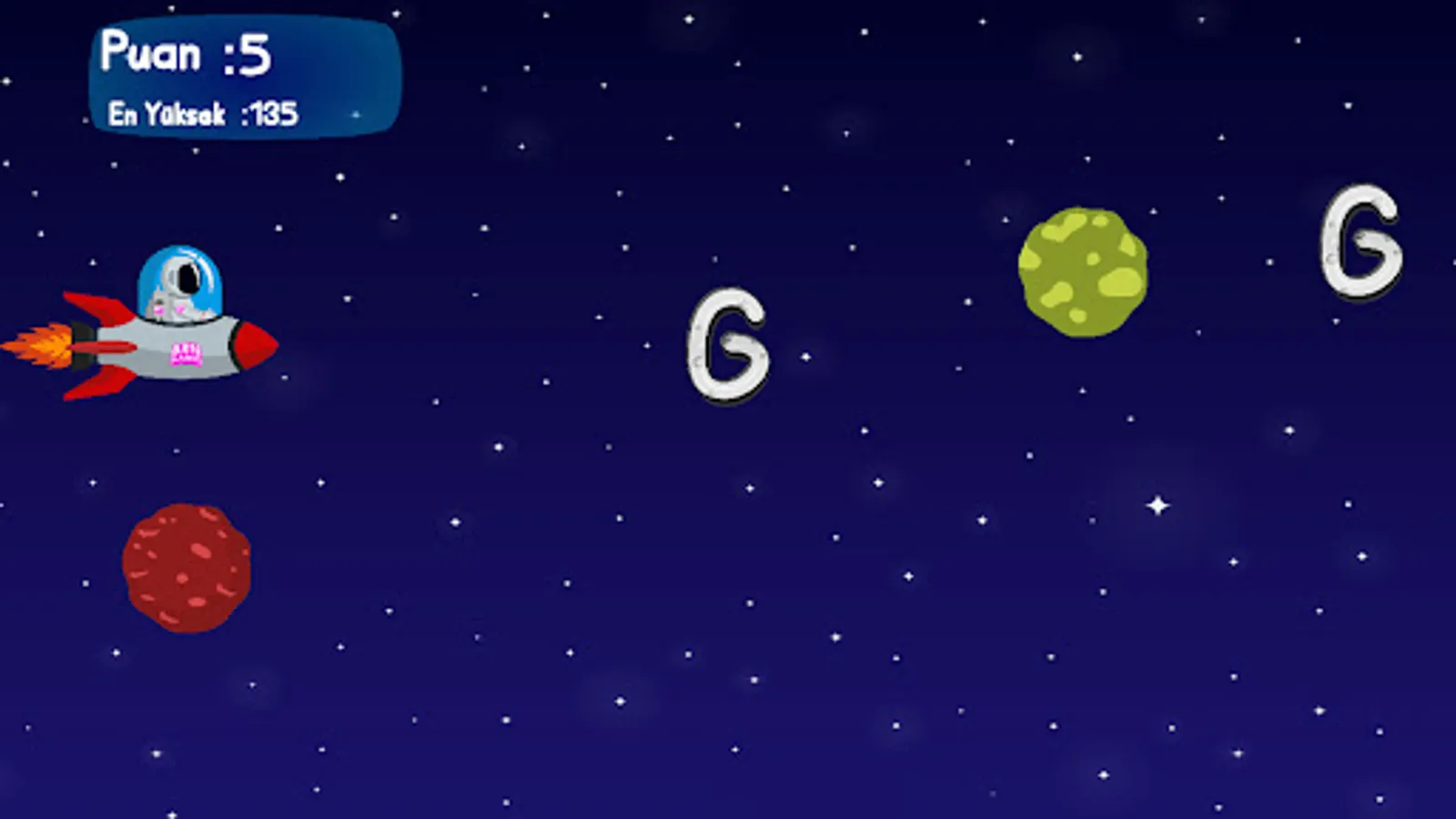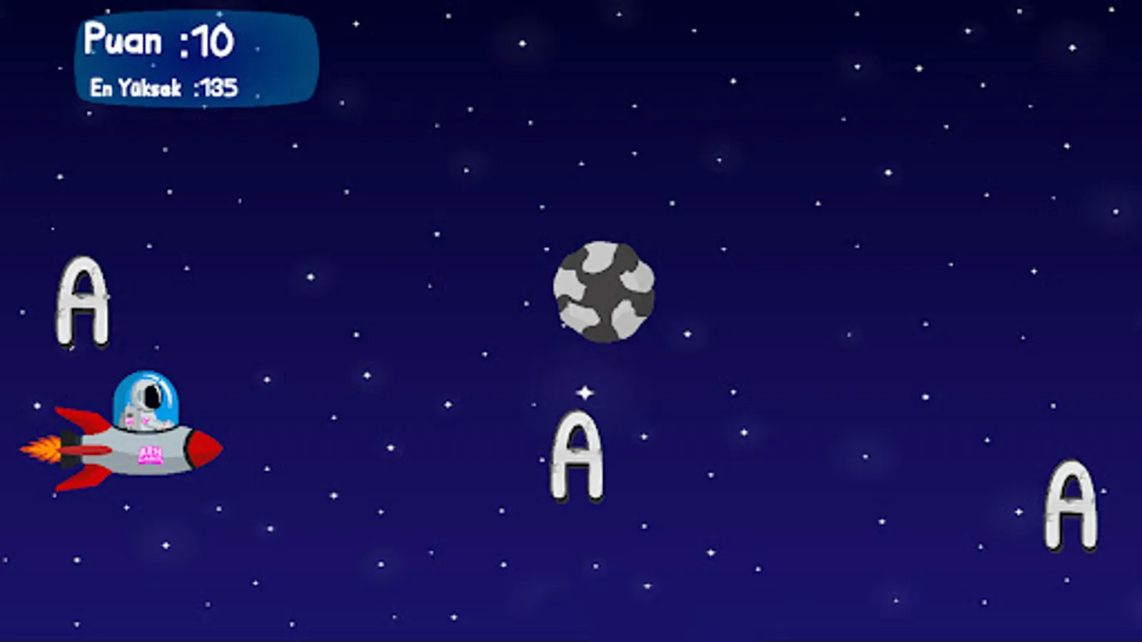 Catch letters in space. One letter in each section, all letters in total. At the end, a bonus section awaits you.