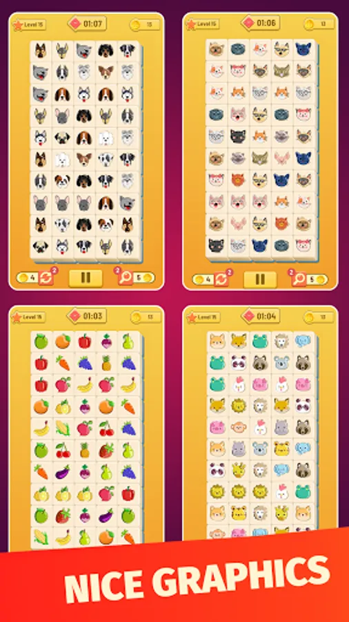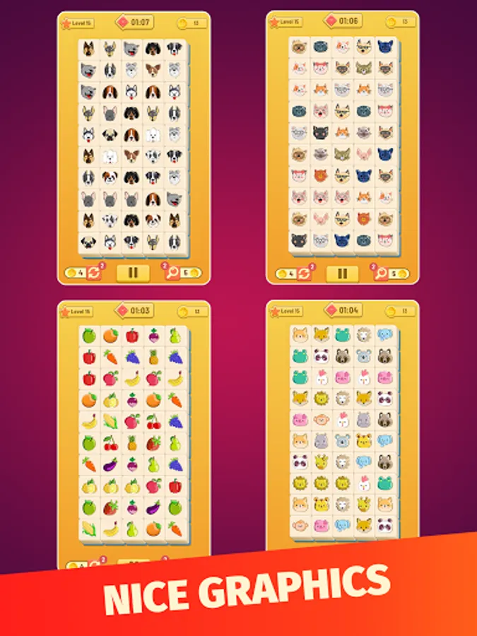 - Onet Connect Classic has many themes and layouts to choose from: fruits, jewels, animals, cake, candy, autumn, winter, kitchen, wardrobe, flowers...