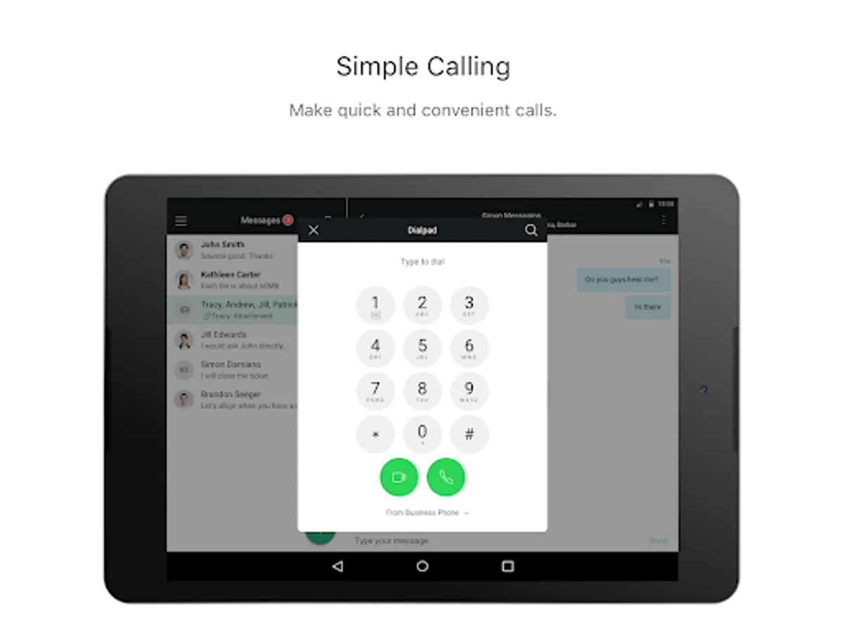 Users can also search corporate directories, manage basic call settings, view call history, and one-tap dial into My Room.
