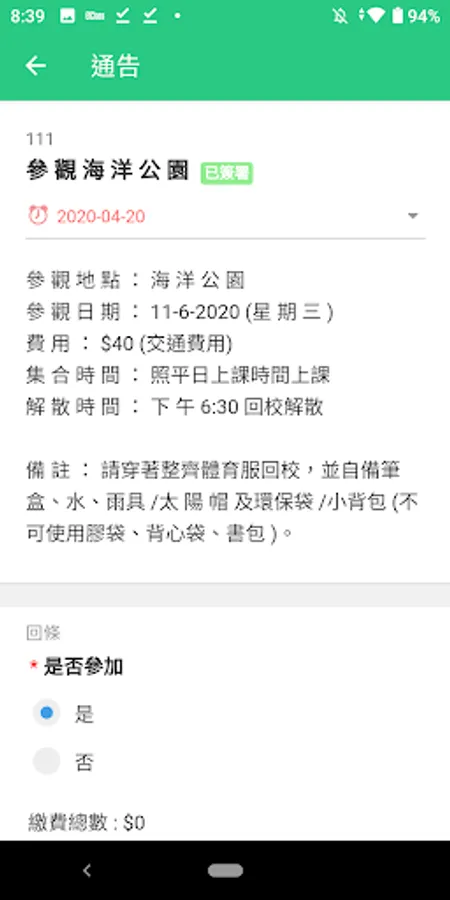 - Parents are able to check the School Information, Special Announcement, receive Push Message so as to keep track of the latest news of their children's school