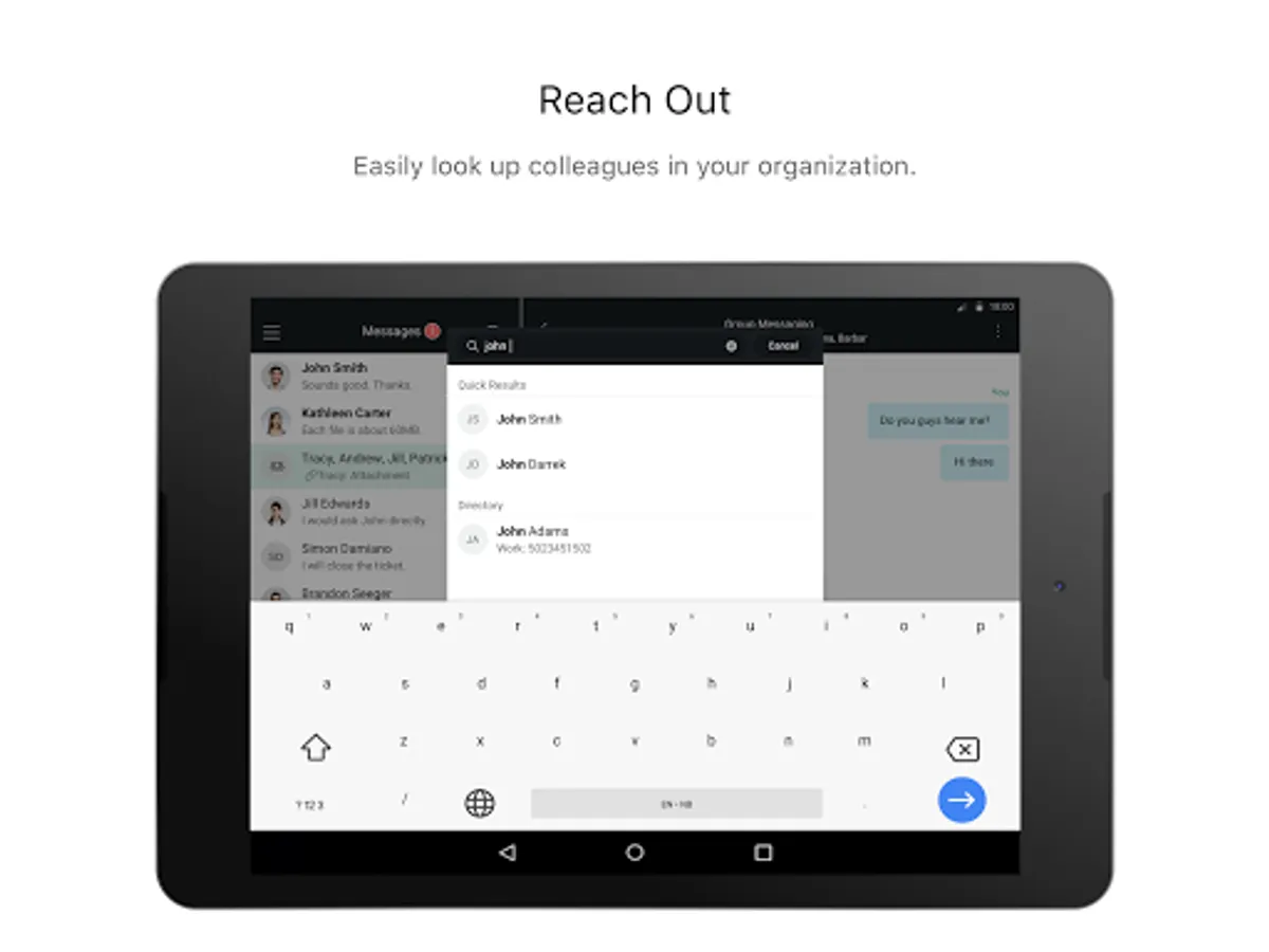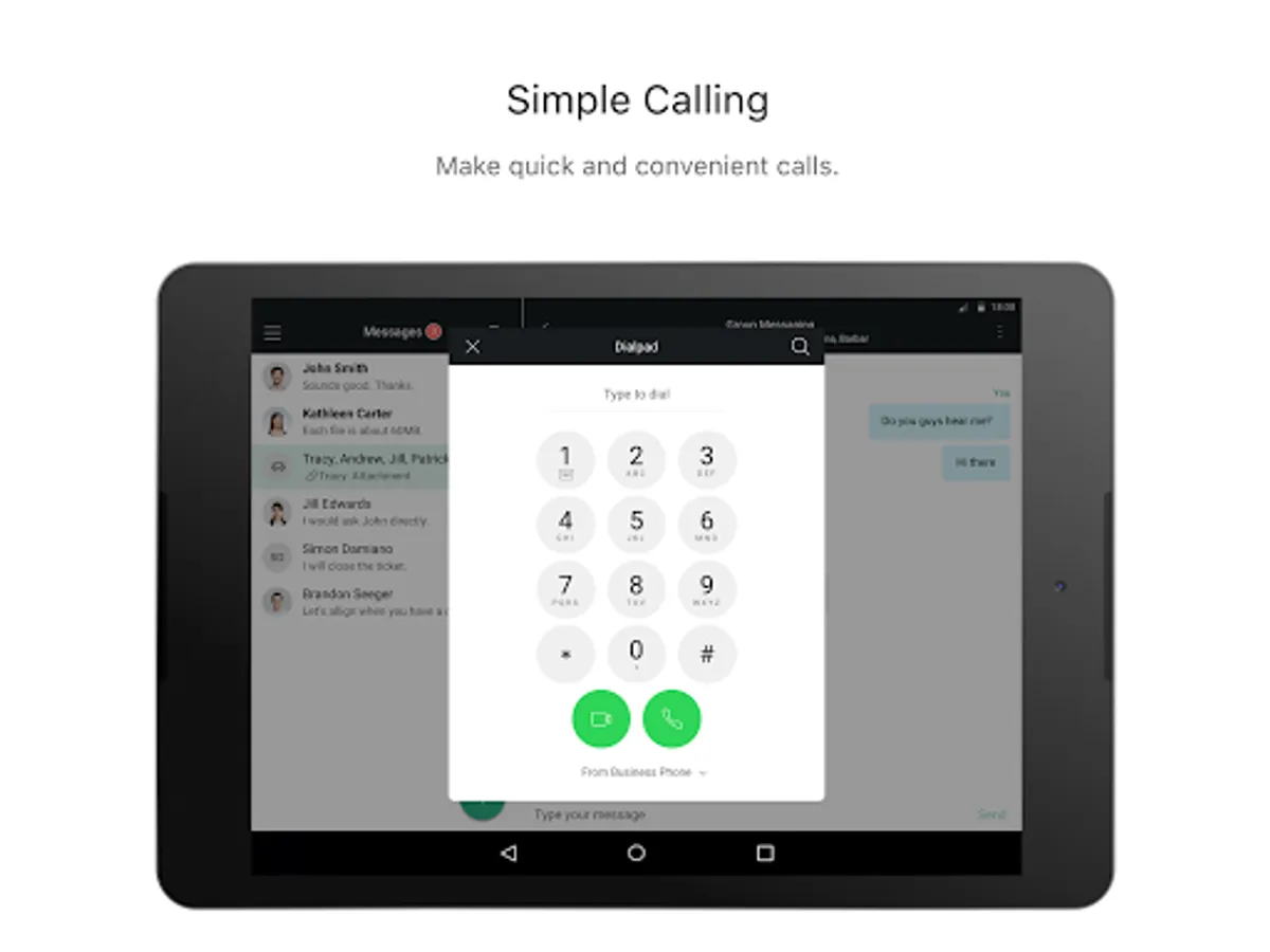 Users can also search corporate directories, manage basic call settings, view call history, and one-tap dial into My Room.