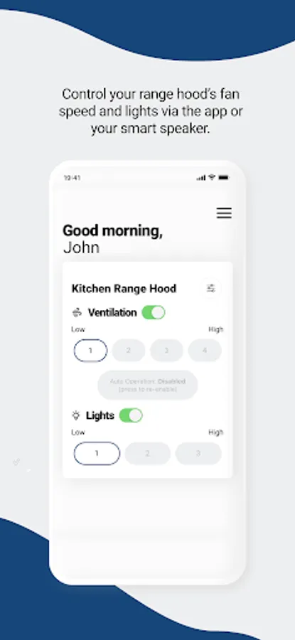 Using this app with your Broan-NuTone Kitchen range hood you are able to remotely control all the features of your range hood. Shut it down once the fume is gone without having to leave the table. The app is the gateway to voice control over Alexa and Google voice.