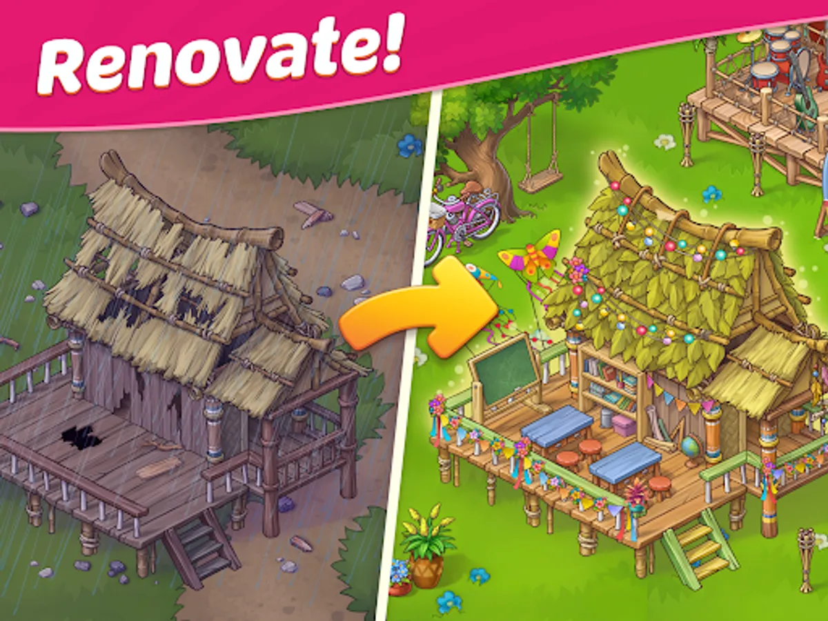 Join the fearless adventurers and enjoy amazing adventures in the tropical jungle! Give the island a new life: solve match 3 puzzles, restore locations step by step and explore the ruins of an ancient city. Behind each palm tree you will find a kaleidoscope of mysterious events, clever puzzles and riddles!