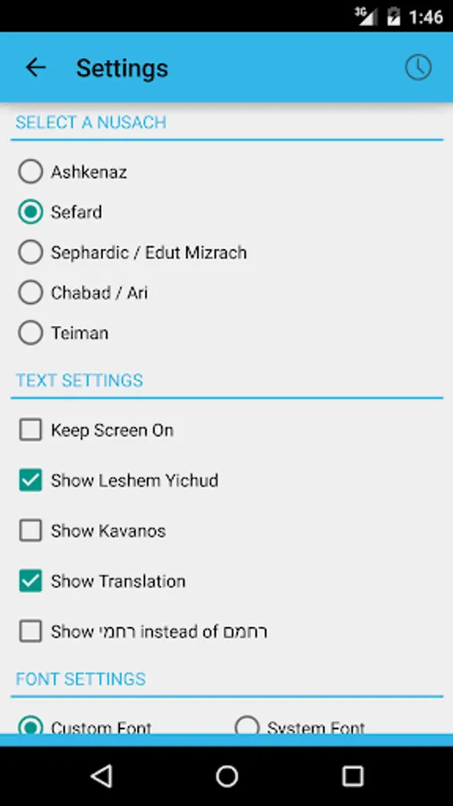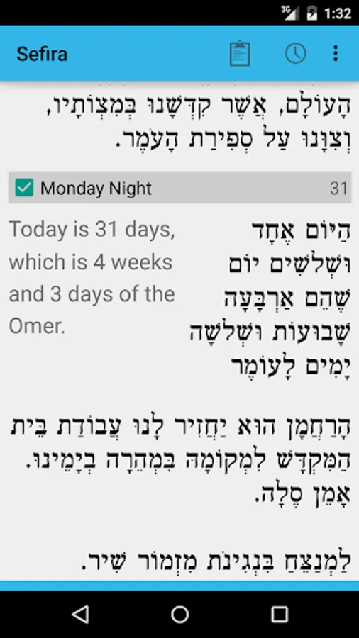 - The full Sefirat Haomer text that automatically changes based on the current Hebrew date