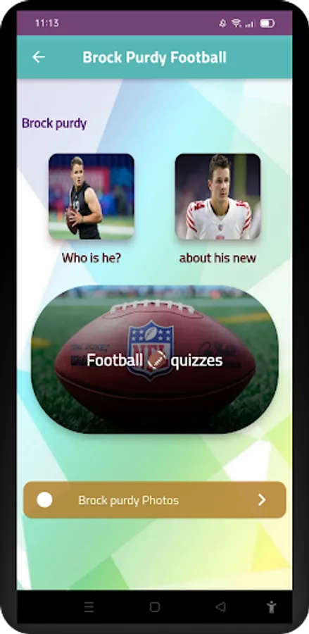American football also known as gridiron, is a team sport played by two teams of eleven players on a rectangular field with goalposts at each end. In this application "Brock Purdy football " you will find many quizzes about this fun game.