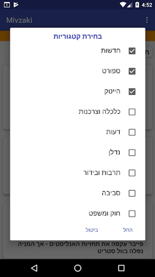 האפליקציה מודיעה בזמן אמת על כניסת מבזק חדש.
