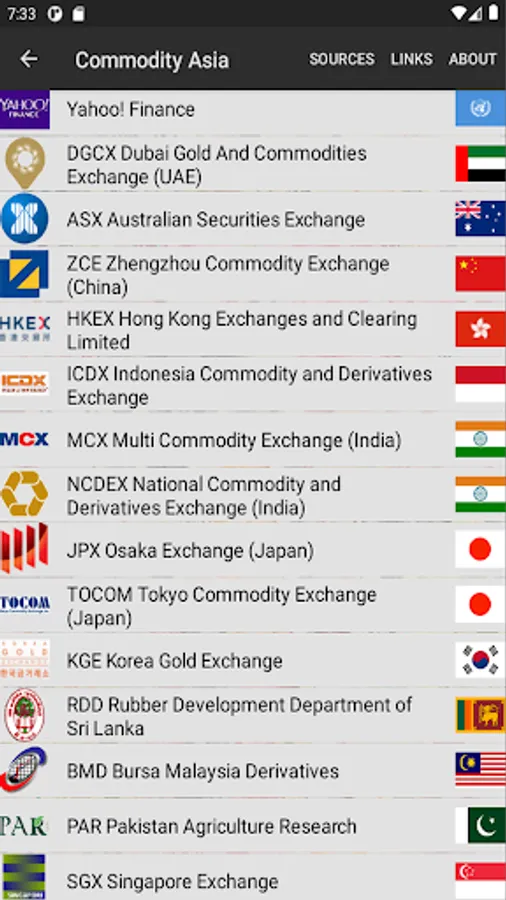 Daily rates of futures and spot prices on the commodity exchanges and other marketplaces in Asia.