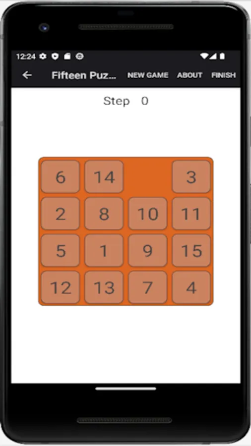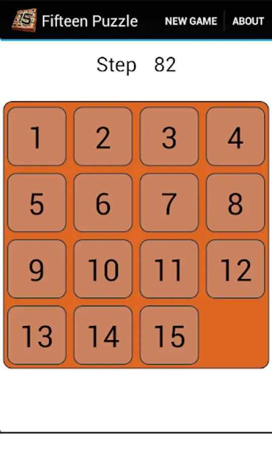 Place the 15 numbered square tiles in the correct order by moving them using the empty space. Several stones in a row or column can be moved together.