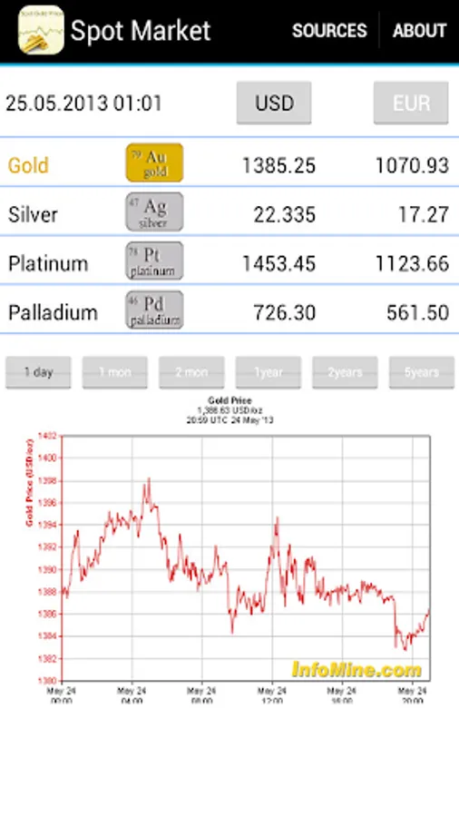 The available data sources are configured via the Sources menu item, you can access their websites via the Links menu item.