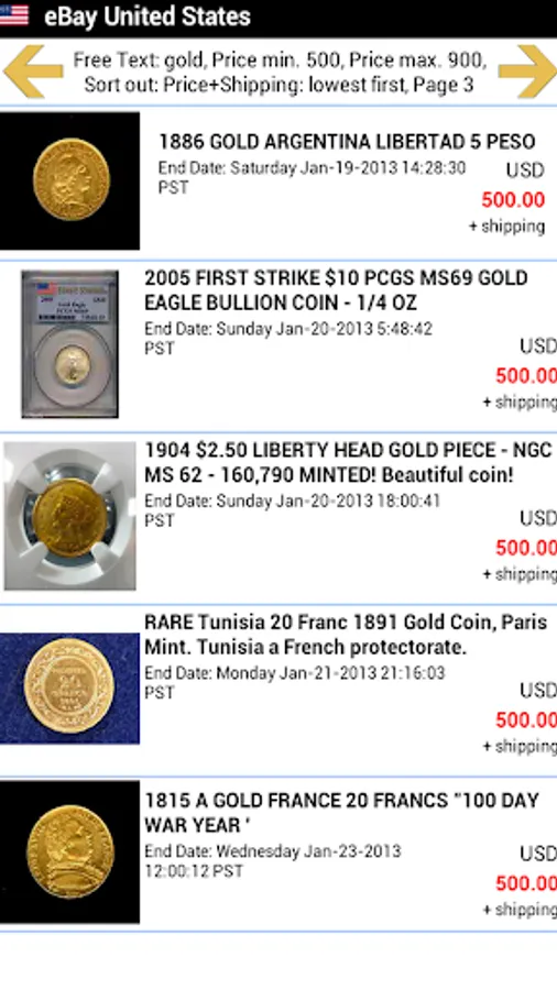 coins and bars on eBay US, eBay UK, eBay Canada, eBay Australia and other regional auction platforms.