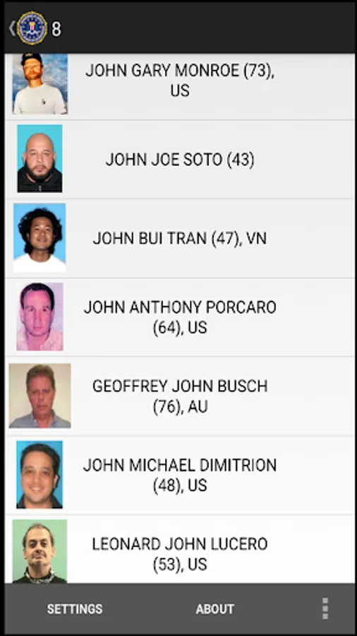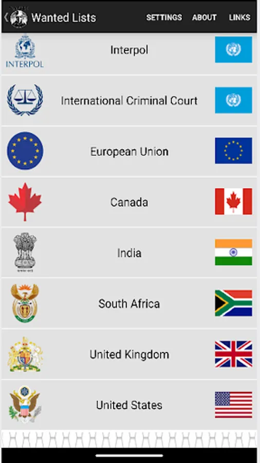 The application provides access to lists of people who are on international (Interpol, Europol) and national wanted lists.