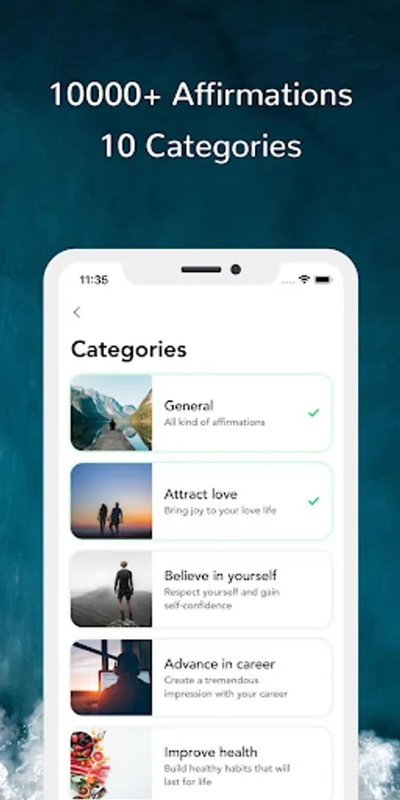 • Relax and calm your mind with the background sounds while reading your affirmation,