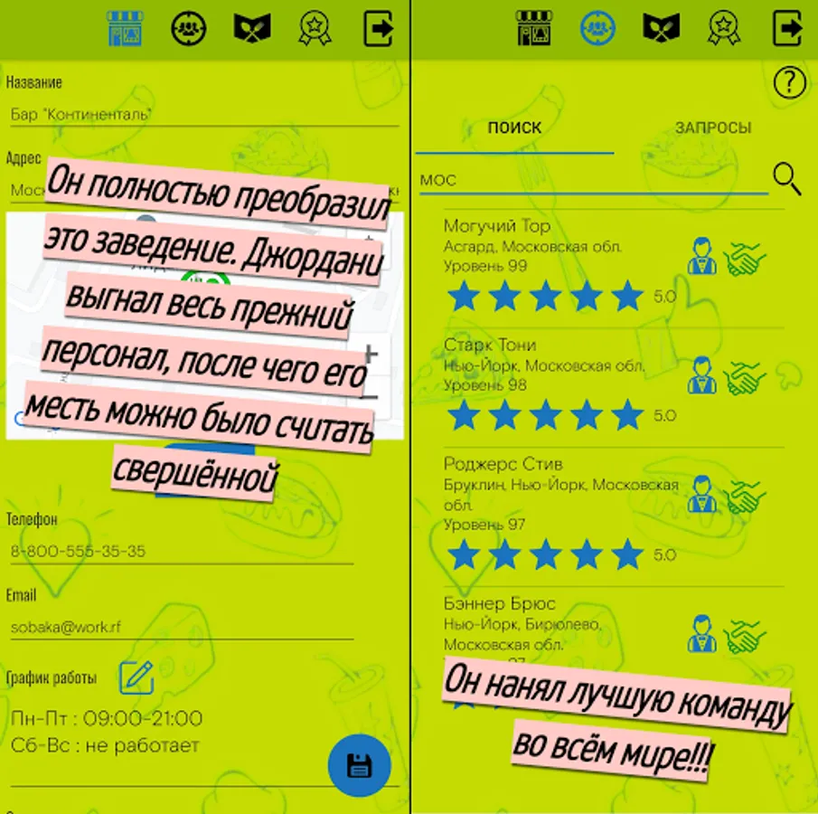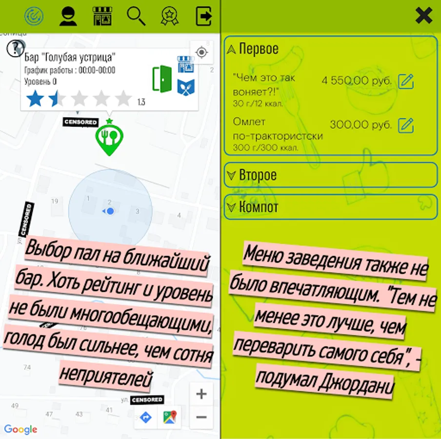 - Do you want to choose where to go to eat / sit / drink because you are hungry / haven't gone somewhere with your soul mate for a long time / celebrate a holiday / too lazy to cook / empty fridge, but you are tired of ordered food? Upper will help! Here is a map, on which the rating of the cafe is immediately clear by the icons, and when you click on them, all the necessary brief information will appear in front of your beautiful eyes in all its glory, and a search by name, city, address with sorting and filters, including only the nearest ones. Why do you need restaurants (cafes), which are tens of kilometers away? Although you can go so far for delicious shawarma.