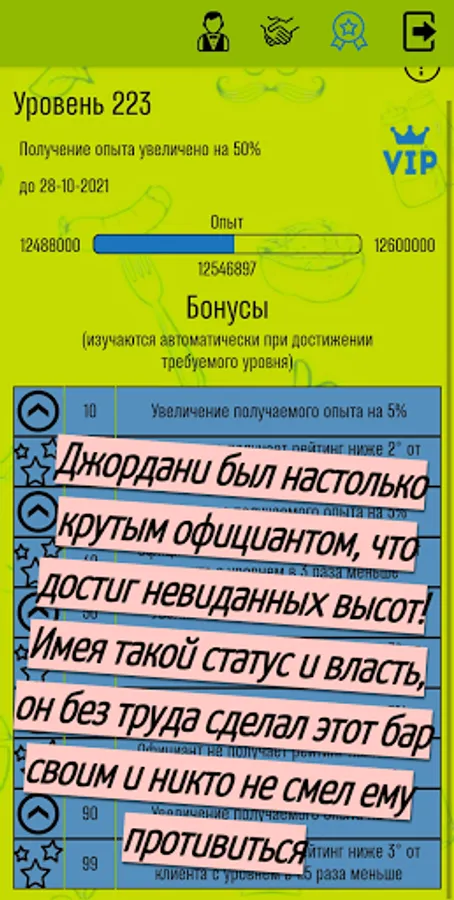 - Do you often visit restaurants, cafes, bars, or other types of establishments and want to feel cool or even cooler? For your work (estimates), gain experience, increase levels, unlock bonuses, become the king of customers!