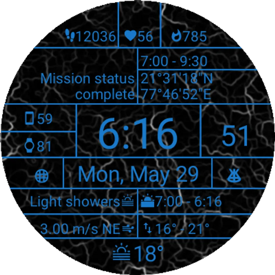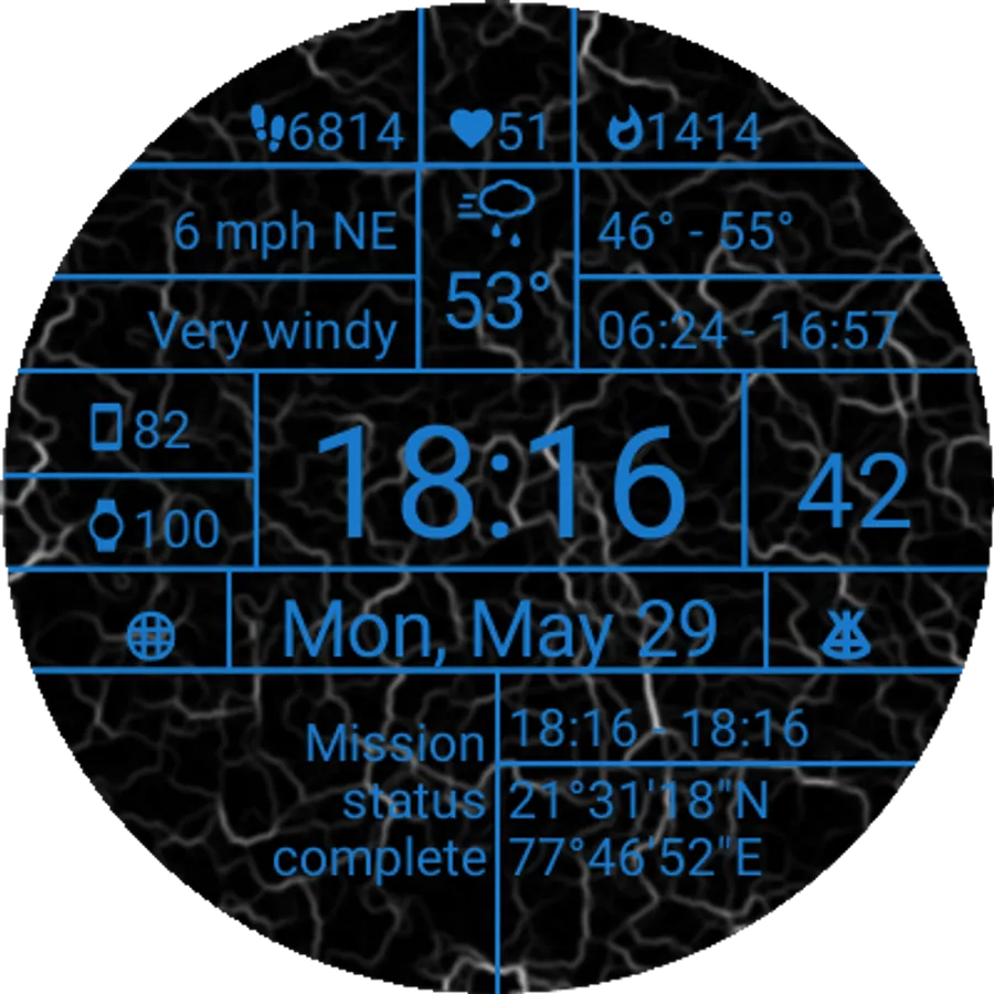 Feel like the best secret agent while sporting the Notro watch face. You'll be able to leave your phone in your pocket as Notro will tell you every necessary detail you need to get through your