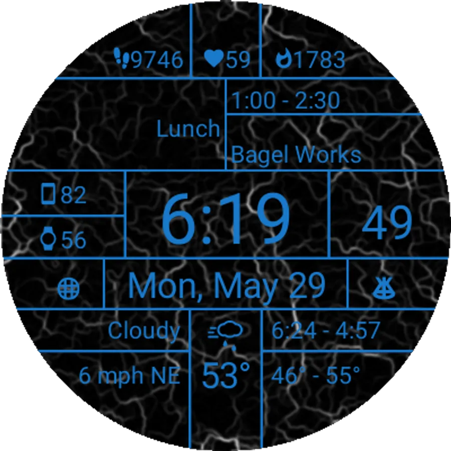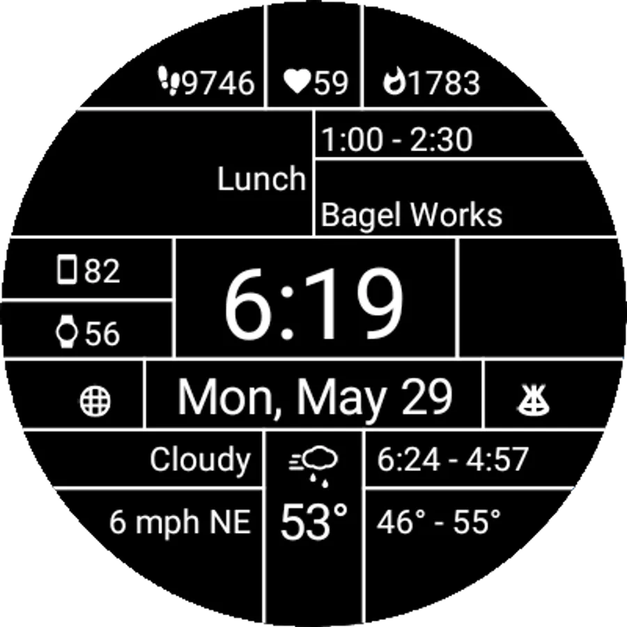 Notro is the most complete watch face for your Android Wear device. When fully utilized, Notro will tell you the time, date, weather, battery level of your devices, and your current fitness data. What follows is a list of all of Notro's fully customizable features: