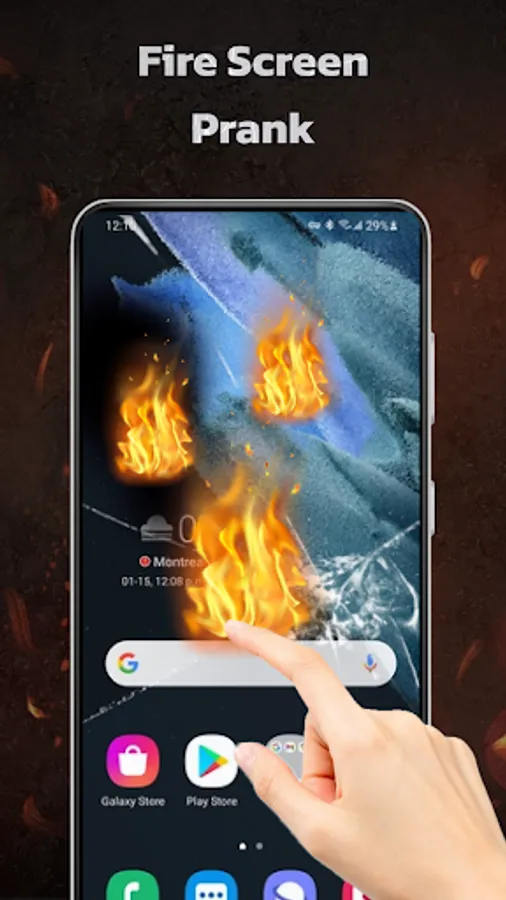 There are so many unique images to decorate your phone background including: - cracked screen - broken phone screen - broken glass wallpapers. This is a fun screen crack app for pranking your friends. When you touch your phone screen, the broken screen prank app simulates cracked screen and loud cracking sound on your phone. The broken effect is so realistic that all your friends will believe that your phone is broken and they will be scared. If you don't like broken screens, you can choose fire or electricity. There are many options for you when using this fake phone crack application.