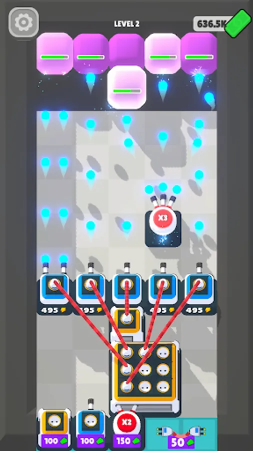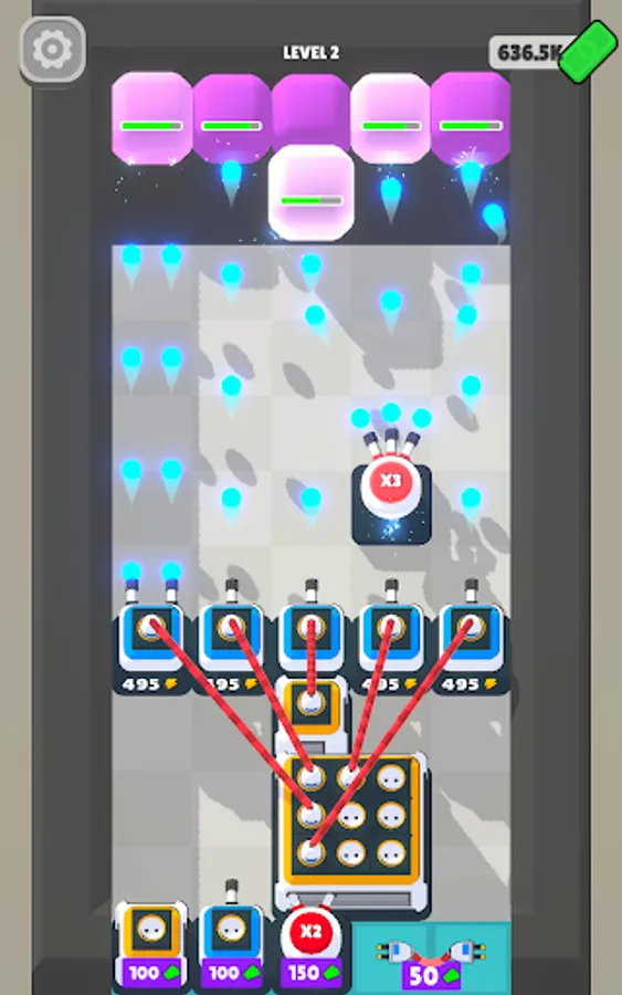 In this game, you must purchase generators, towers, cables, and multiplicators to create the ultimate defense system. Set multiplicators in front of your towers to multiply the number of bullets they fire and strategically place your elements to hit the blocks and earn cash. With each level, the challenge increases as more blocks appear and new types of blocks are introduced.