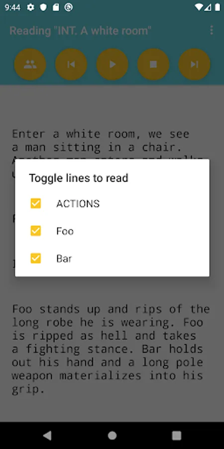 It's simple! Just add your script to the app, toggle whose lines you want read, and hit play.