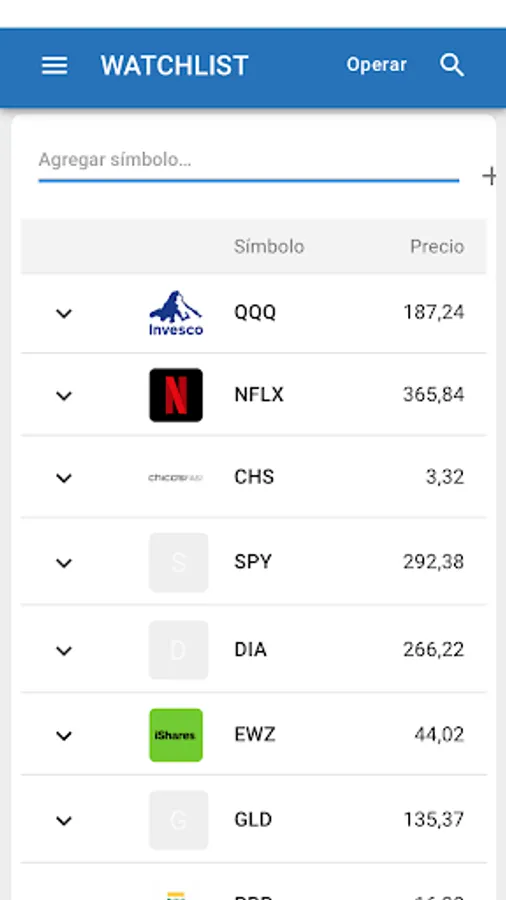 Trade with shares listed on NASDAQ, NYSE and AMEX (*) in real time.