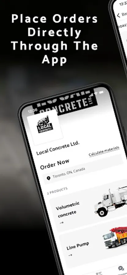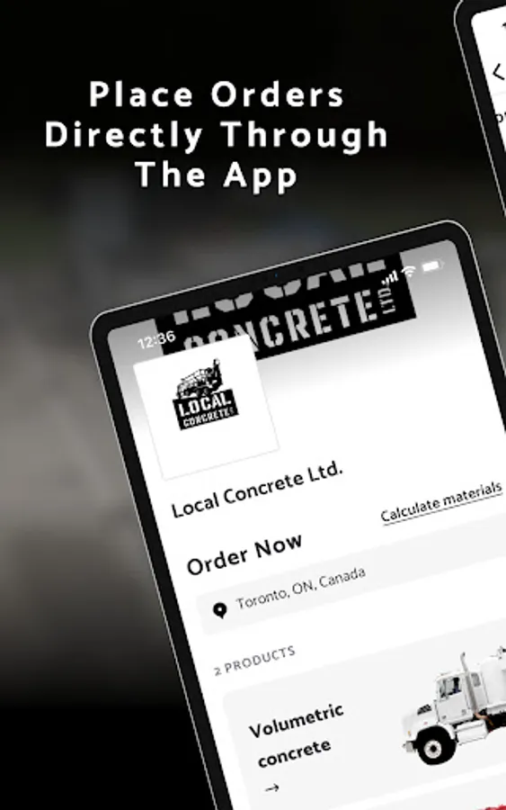 The Local Concrete app is a convenient way to order concrete from anywhere, at anytime for timely delivery to your job site. Users can order volumetric concrete or line pumps, check delivery availability, and complete pre-payment in a single user-friendly interface. The app provides a confirmation of the order and users can track their truck, en route, for on-time