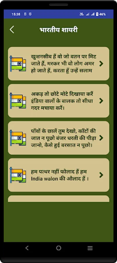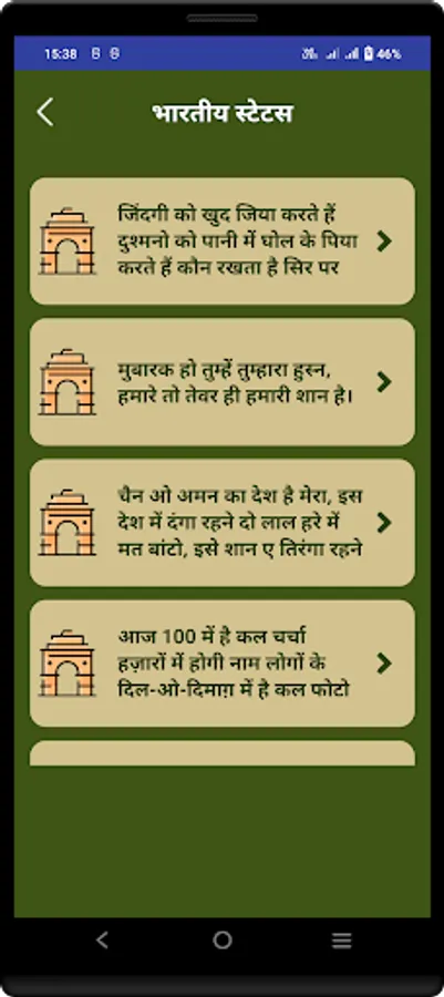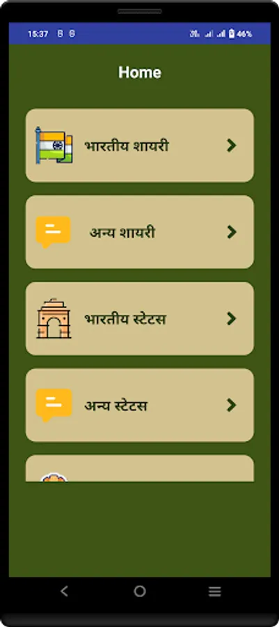 This Application Provides all new Bhartiya Status Hindi and Bhartiya shayari Hindi. All Bhartiya Status and Shayari is Presented in Easy Hindi Language.