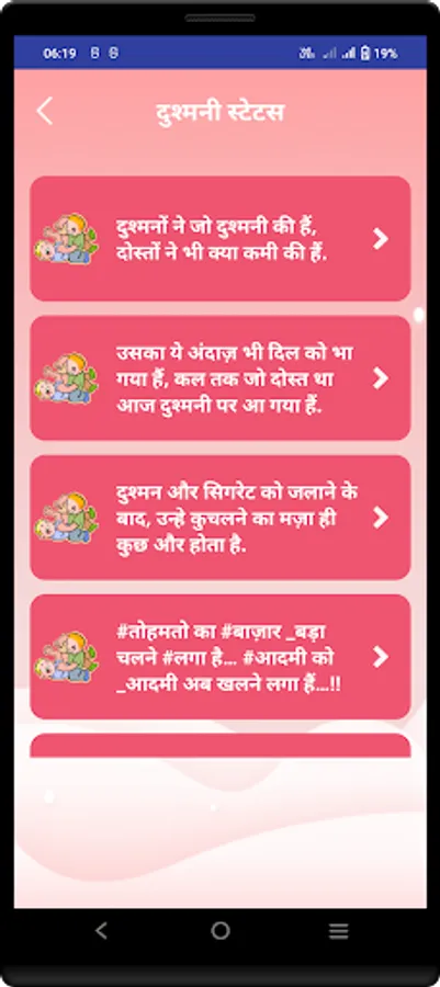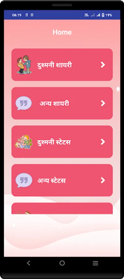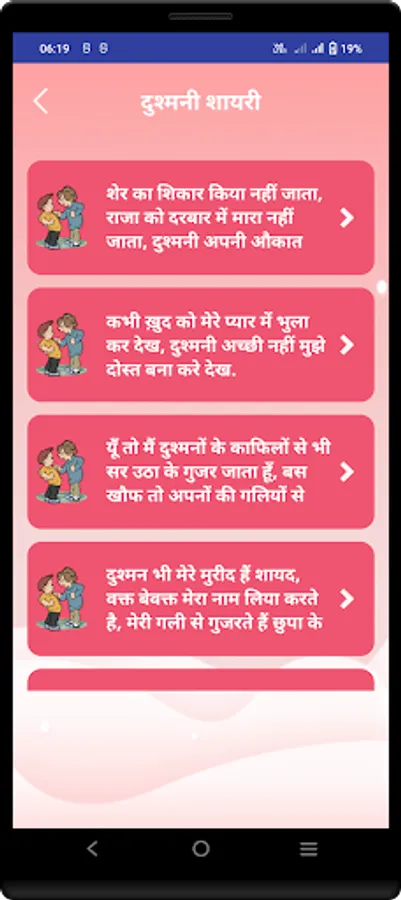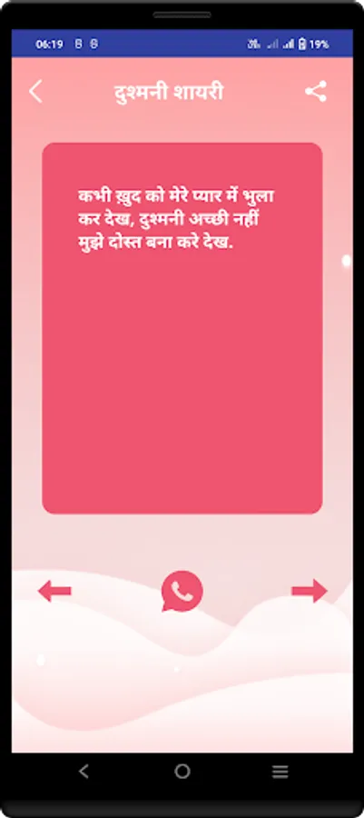 This app also cantains Badla Shayari Hindi, badla status Hindi, enemy shayari Hindi, revenge shayari, revenge status, Dushman Shayari, Dushman Status etc.
