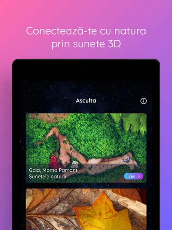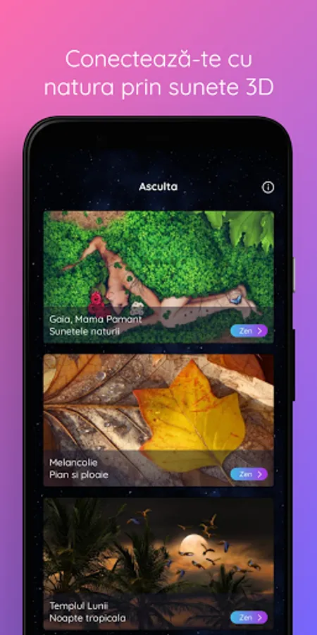 • Enjoy the sounds of nature processed through 3D technology that will render the most authentic sensations and will transpose you into a fascinating world, far from the hustle and bustle of everyday life, where you can relax at will.