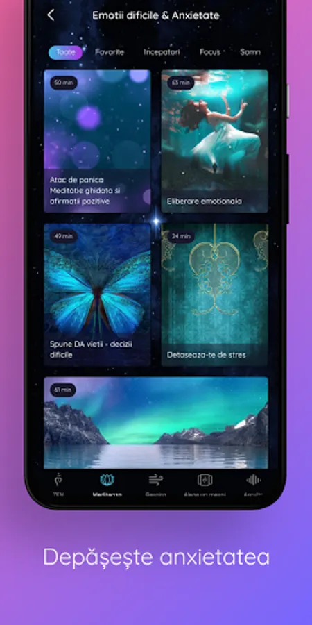 We have prepared dozens of meditations, guided visualizations and personal development exercises that cover a wide range of experiences we face in everyday life, regardless of age or social status - from trust, forgiveness, strength to take decisions, the need for security, relationships, anxiety, changing beliefs… to self-love, compassion and gratitude.