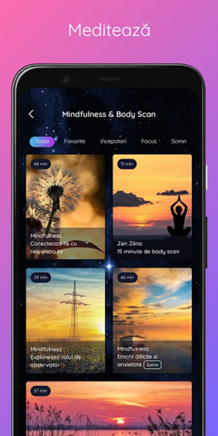 • Start your journey of transformation and personal development today, accessing the collections of guided meditations and the topics we have prepared for you: