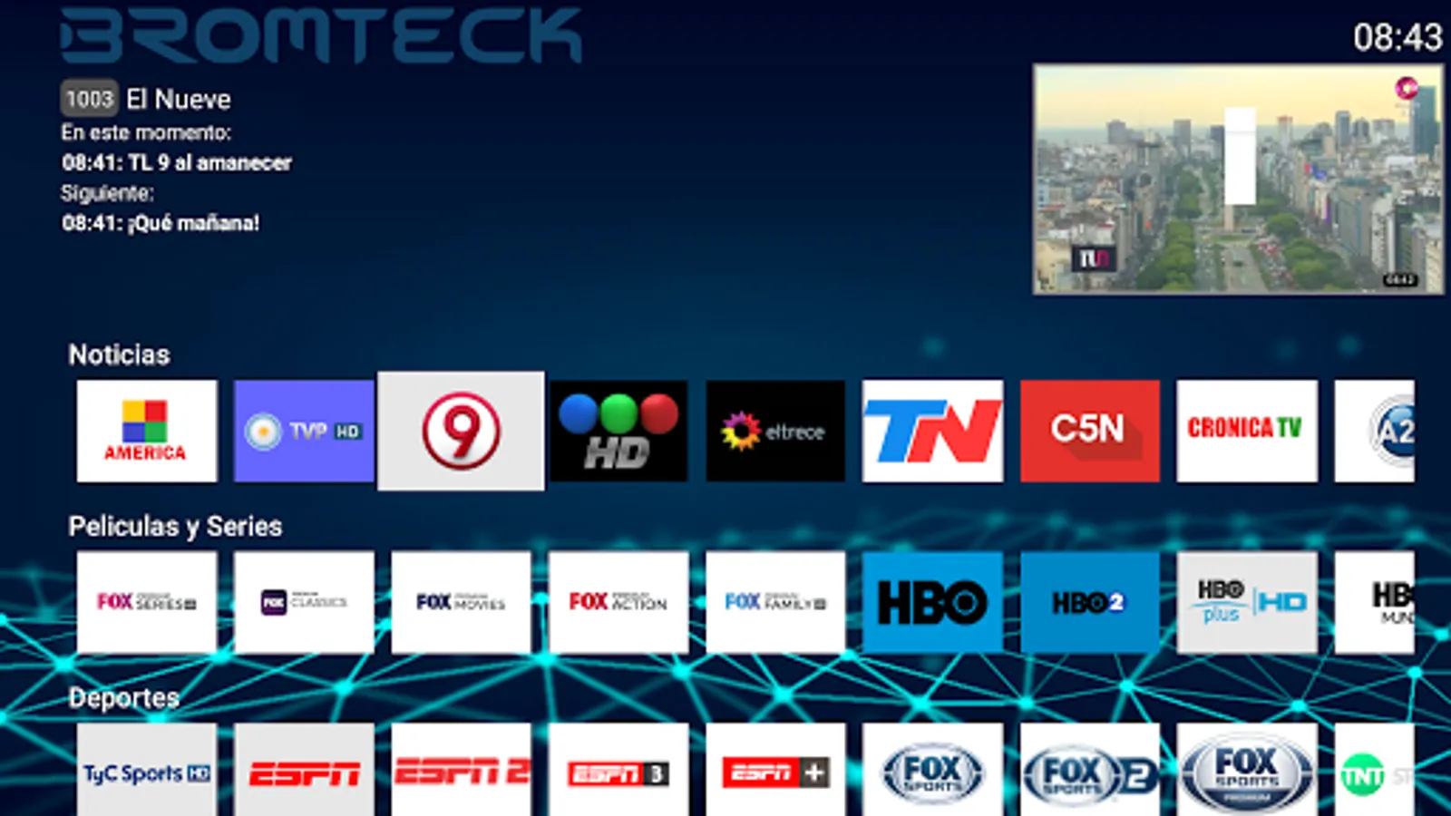 Bromteck is a video streaming solution for enjoying live TV and movies. Access with the username and password of your TV provider