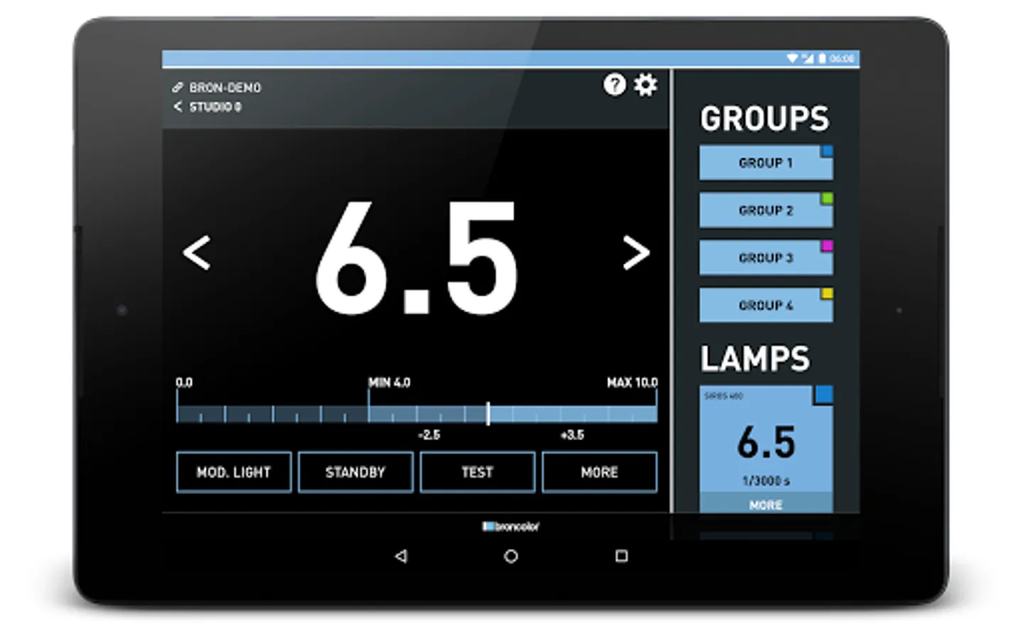 The bronControl app enables you to conveniently control several broncolor Siros WiFi, Scoro WiFi and LED F160 devices.