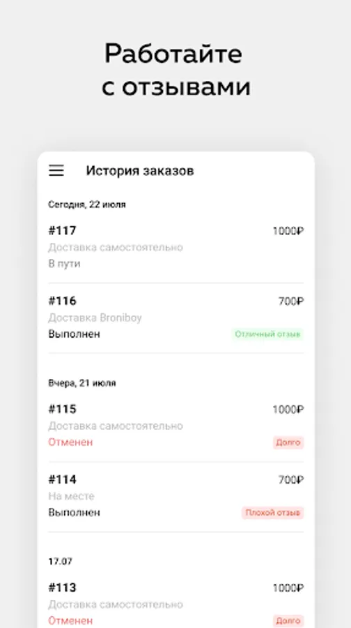 With the Broniboy Partner app, you can organize the receipt and management of orders through the Broniboy fast food delivery system.