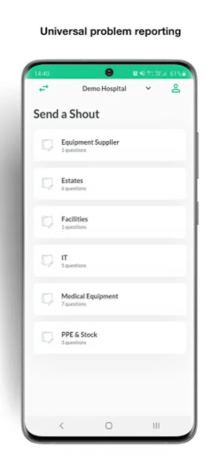 Users of the MediShout app simply select their ward, type their problem, add a photo and press send. They can be messaged back on the app for more information or notified when the issue is resolved. Our platform allows staff to instantly access departments such as IT, Facilities and Stock through one portal.