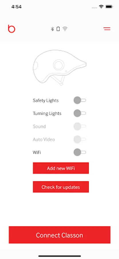 With 3 simple icons it will show you if the helmet's Bluetooth and WIFI are on or off and the battery level.
