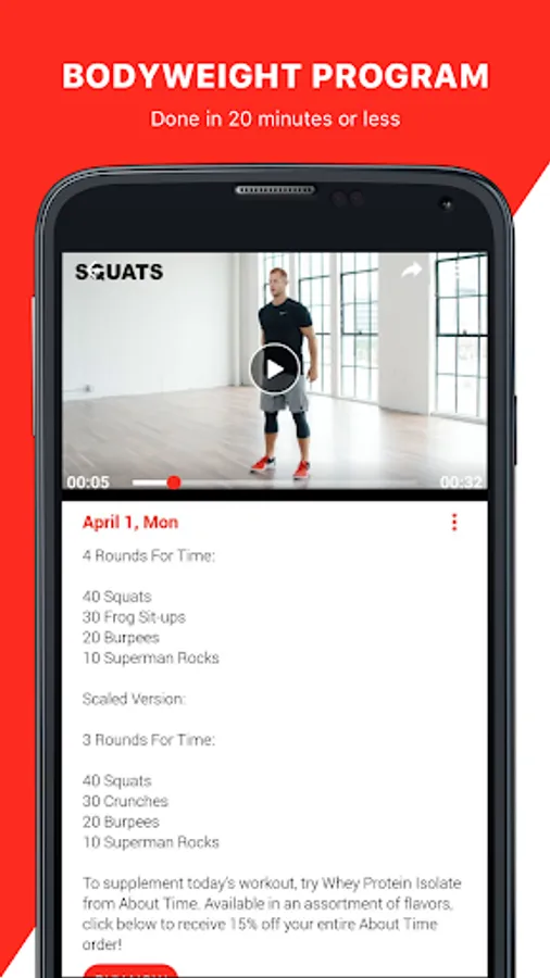 The Bodyweight program is designed for people of all ages, genders, and fitness levels. It will help you burn fat, increase lean muscle, build stamina, and improve mobility. It includes: