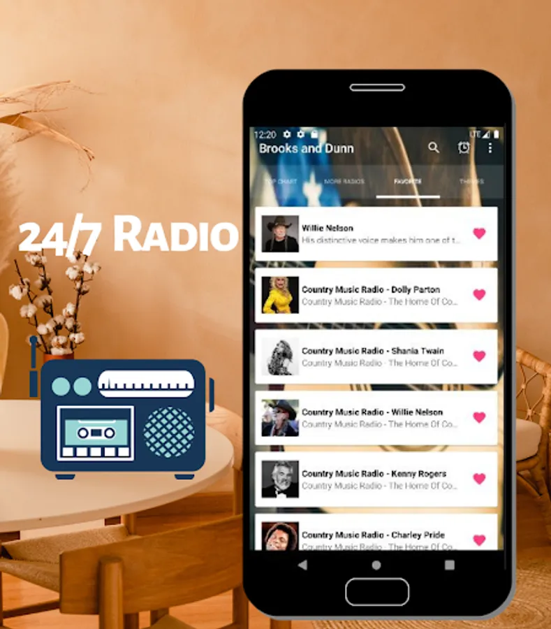 Discover and enjoy the incredible country music of Brooks & Dunn with Brooks and Dunn Country Songs, the essential app for all lovers of this iconic duo. Immerse yourself in their entire catalog, spanning decades of memorable hits such as 'Boot Scootin' Boogie', 'Neon Moon', 'My Maria' and many more. Our app lets you access their music anytime, anywhere. With an intuitive and easy-to-use interface, you can enjoy a seamless playback experience and discover new favorites along the way. Download Brooks and Dunn Country Songs from Google Play now and immerse yourself in the authentic country spirit with Brooks & Dunn's timeless hits.