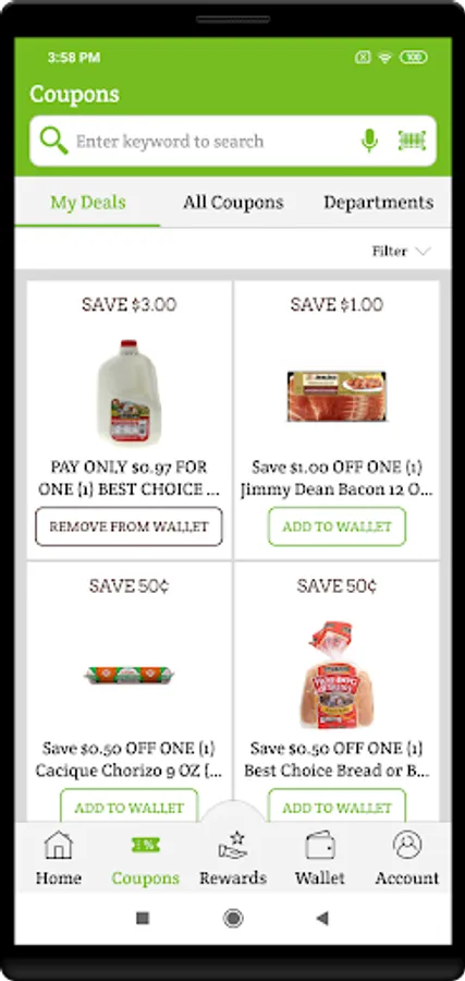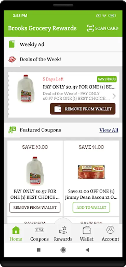 With the Brooks Grocery Rewards App you can claim as many coupons as you want with one simple scan! No more hassling with cutting out paper coupons or printing them from emails. The Brooks Grocery Rewards App brings them all into one App on your mobile device!