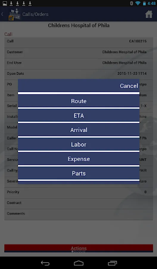 o Record Call Activity such as ETA/Arrival/Labor/Expenses/Faults/Notes