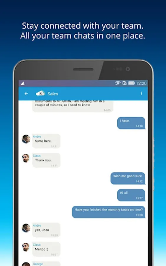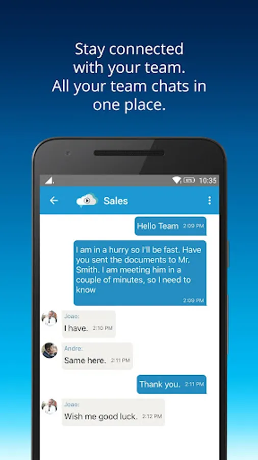 - Keep in touch with your team wherever you are with text chat and chat rooms