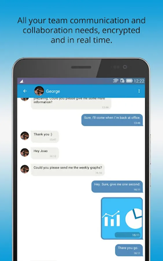 Brosix is a cross-platform secure team instant messaging solution specifically built for teams, groups, companies and corporations. The Brosix app brings this secure team communication to your mobile device, allowing you to stay connected on the go. The app comes with a full range of features that allow you to securely communicate and collaborate with your team from anywhere.