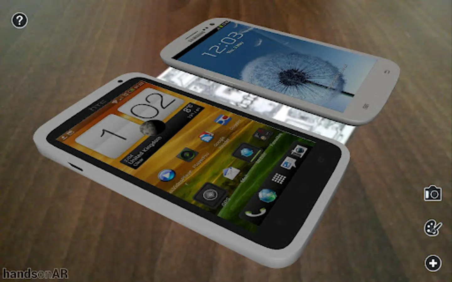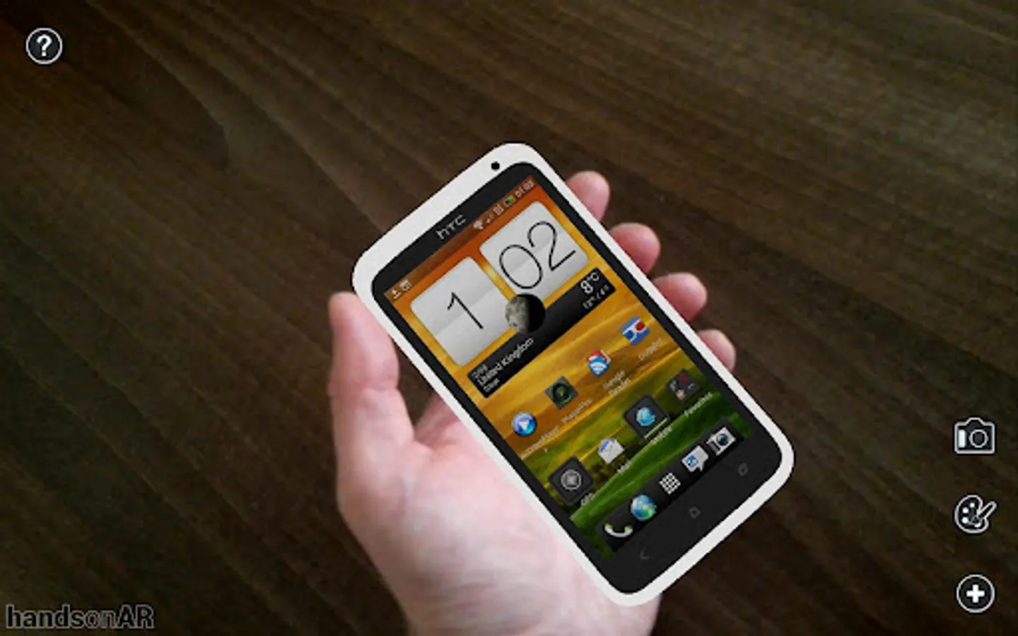 handsonAR uses augmented reality, will find the image marker and will display the mobile device instead.