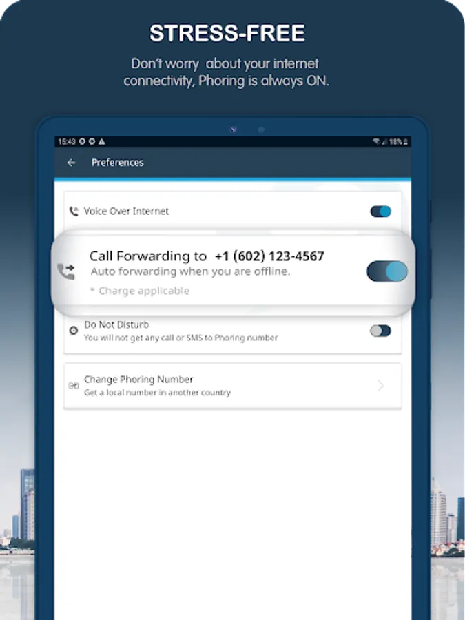 Phoring simplifies your communication, whether your smartphone has access to WiFi or out-of-internet, you will never miss your important calls. Our Intelligent Call Forwarding tools forward your calls to your mobile number automatically when your smartphone is out of internet connectivity.