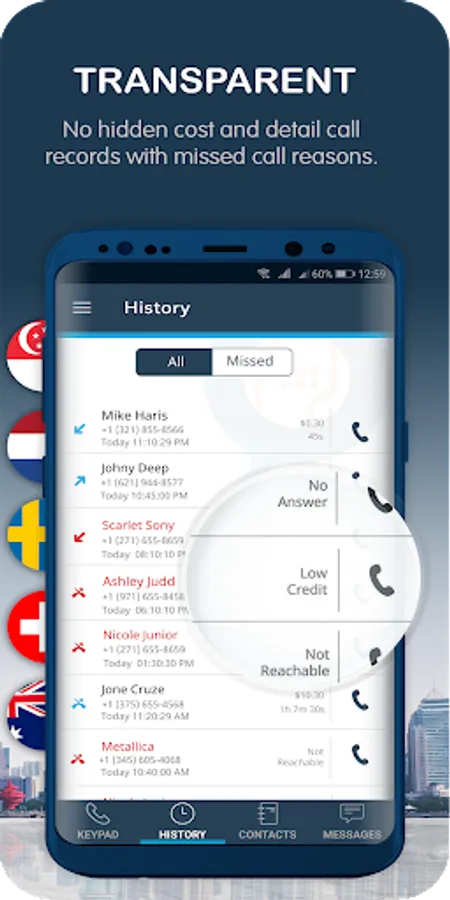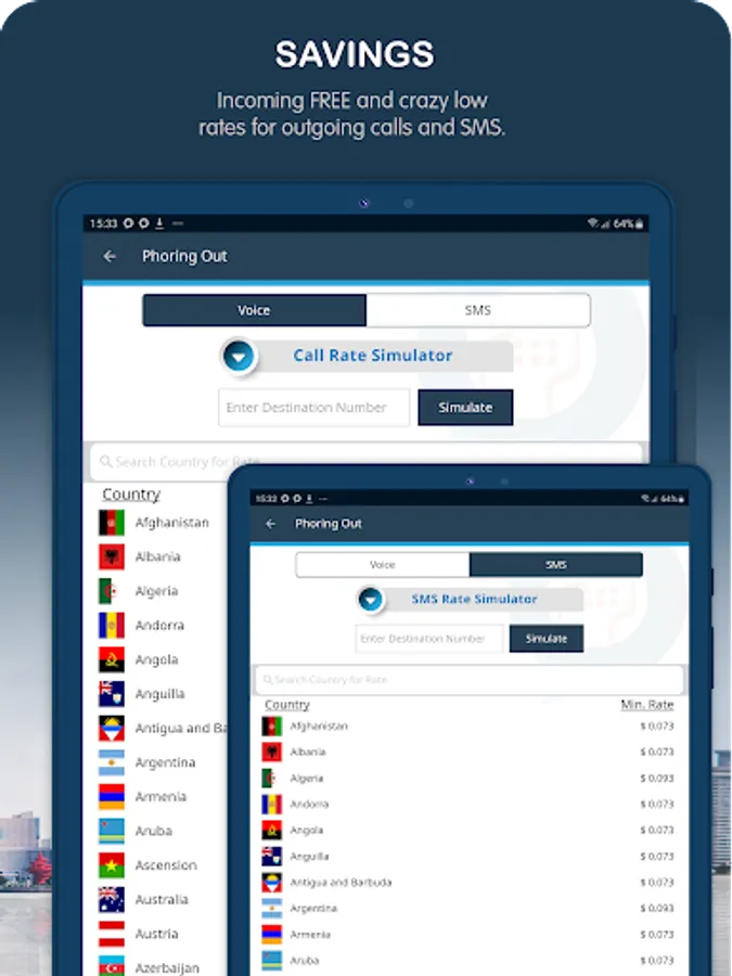 Phoring helps to avoid roaming charges when traveling internationally by using WiFi hotspots and enjoy very low international rates.