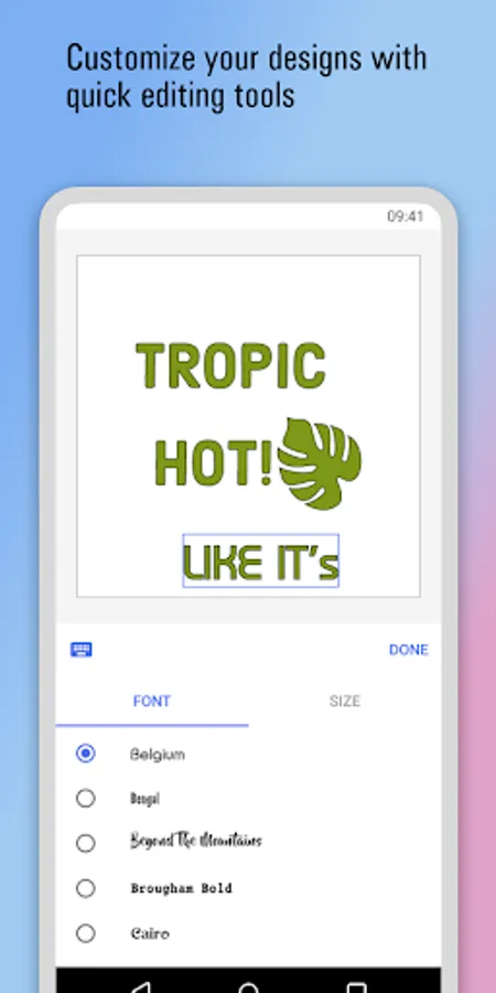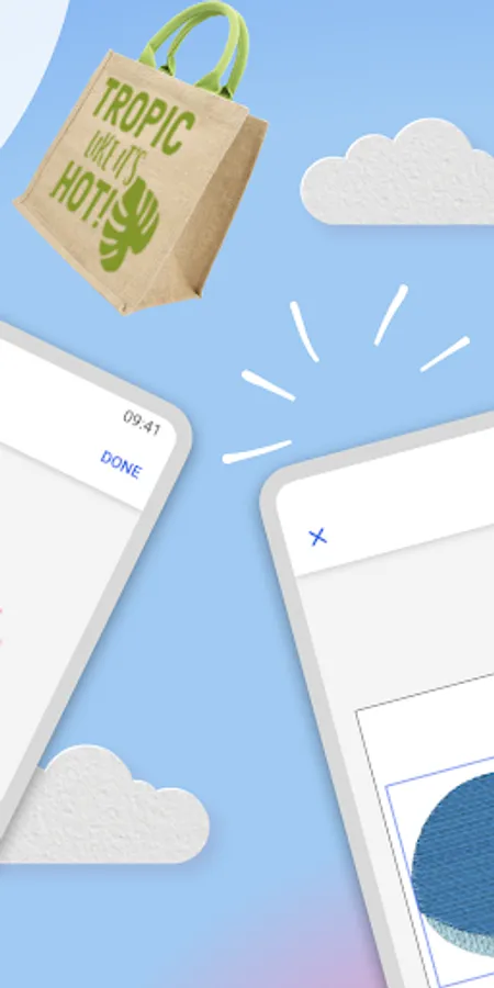 Create printing designs with templates, logos, free designs or images on your mobile device.